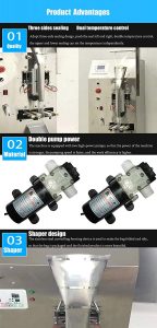 - ΣΦΡΑΓΙΣΜΑ: αυτή η μηχανή πλήρωσης υγρών υιοθετεί σχέδιο τριών πλευρών στεγανοποίησης για να σπρώξει τη σφραγίδα αριστερά και δεξιά, για να βεβαιωθείτε ότι η σφραγίδα είναι σταθερή και όμορφη.